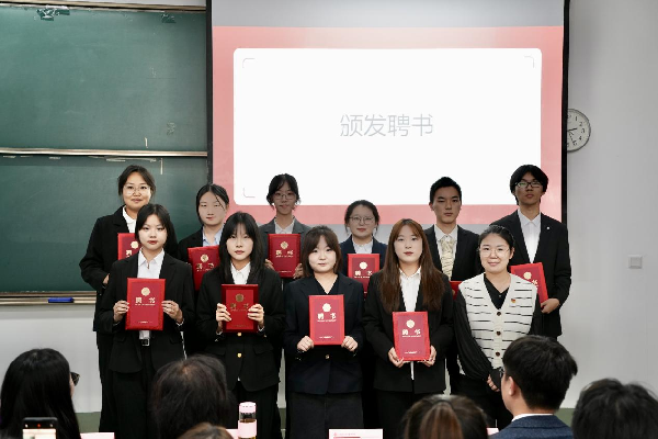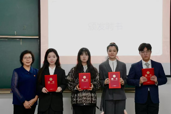 365上市公司党总支副书记、副院长沈丹为第六届团委学生会各部门负责人颁发聘书。