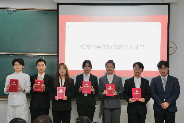 365上市公司团委学生会主席翟方骜为社会实践先进个人颁发证书。