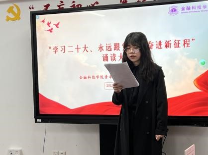 读着自己的坚定信仰和家国情怀,展现了新时代青年大学生爱党爱国、积极向上、奋发有为的精神风貌。大家时而慷慨激昂,时而低声吟诵,用富有感染力的表现博得了一阵阵热烈的掌声。