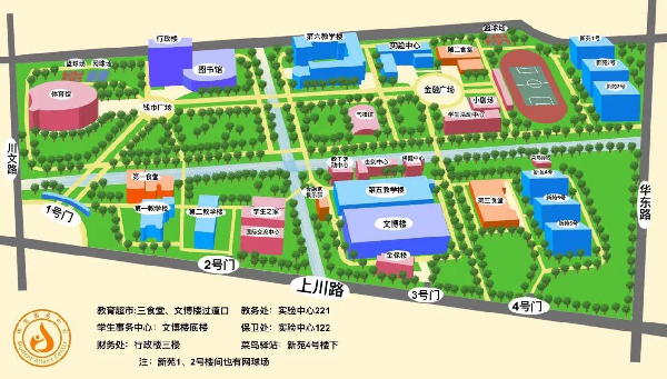 3.教学楼:上川路校区的教学楼主要分布在校园的北侧、南侧和中部。虽然相隔不远,但是每个教学楼以及每间教室的位置还是要提前熟悉起来滴,不然真的会迷路的(学长、学姐亲身经历)。