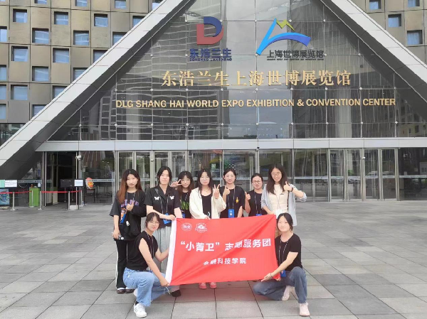在志愿服务的过程中,志愿者团队各司其职、井井有条。“小菁卫”分布在闸机口、服务台、信息展板旁,为观众提供导览服务、协助维护现场秩序、解决难免的碰撞和误解,与来自五湖四海的专业人士交流,展示金科学子临场应变能力的同时也拓展了眼界。