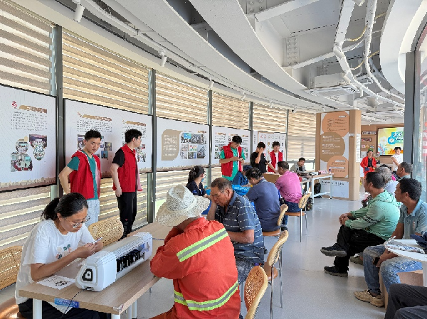 过程中,团队成员与实践部骨干积极协助现场工作人员为社区工作者们提供休息、测量血压、手机贴膜等暖心服务。