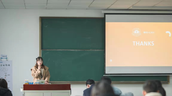 最后,黄楚怡同学作为2022届毕业生代表发言,号召同学们勇于面对机遇和挑战、合理定位自己,提高抗压能力,以积极的心态应对就业与择业。